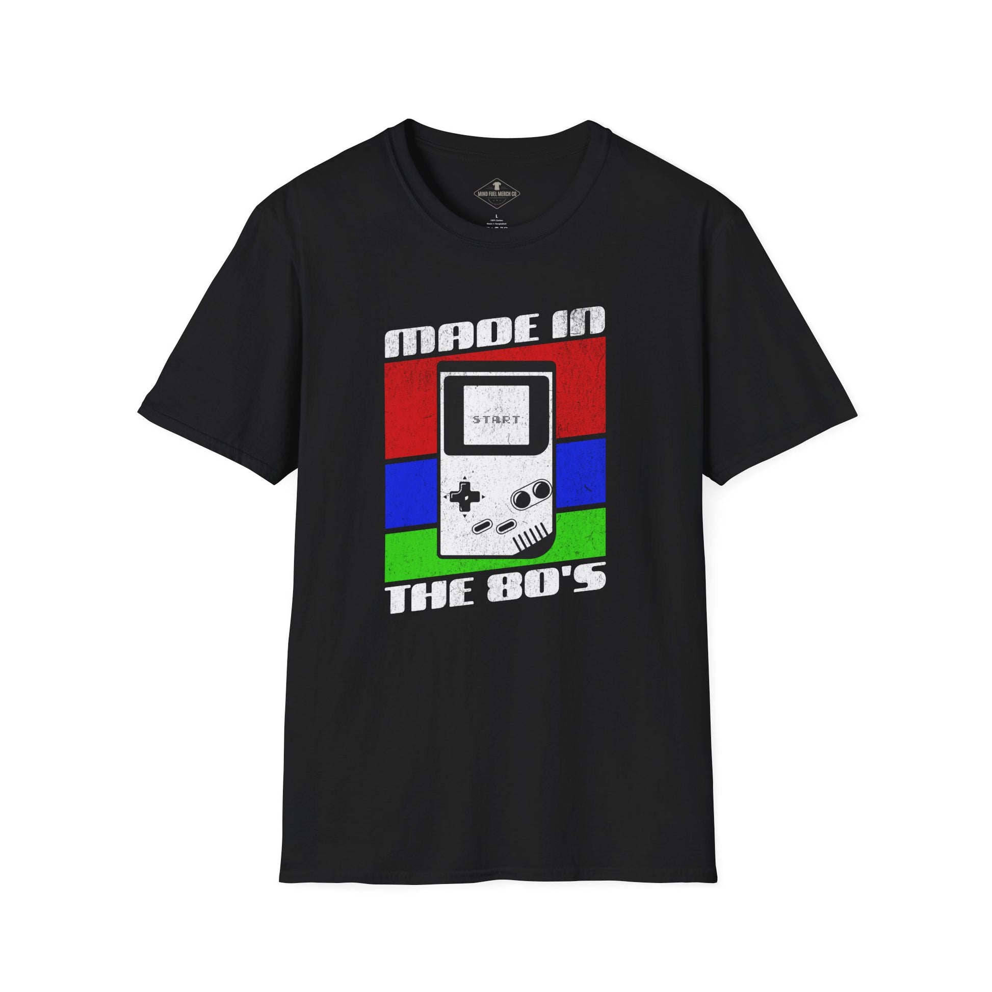 Made In The 80's design printed on the front of a black t-shirt